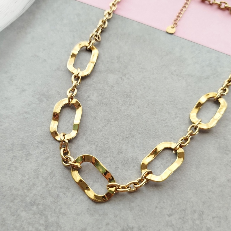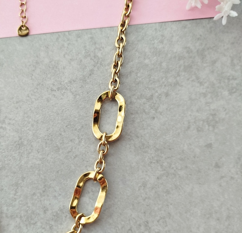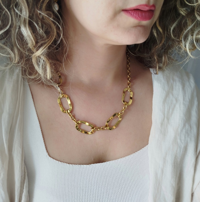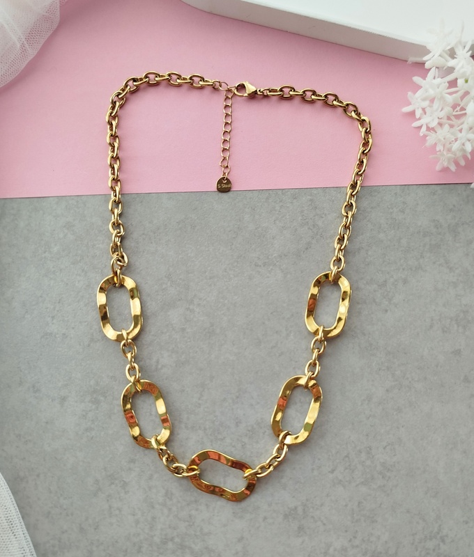 Η αλυσίδα με μεγάλους εντυπωσιακούς κρίκους από επιχρυσωμένο ανοξείδωτο ατσάλι ξεχωρίζει για τον κομψό και μοντέρνο σχεδιασμό της. Είναι το είδος του κοσμήματος που μπορείς να φοράς καθημερινά, καθώς ταιριάζει εύκολα με κάθε εμφάνιση.