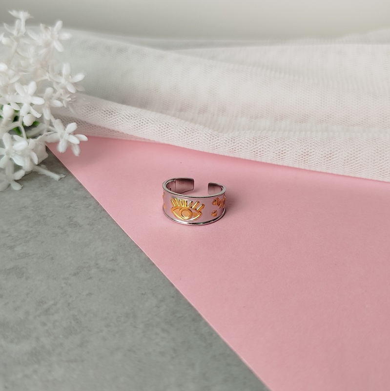 Δαχτυλίδι Ατσάλινο Δίχρωμο με Μάτι Duo Symbols