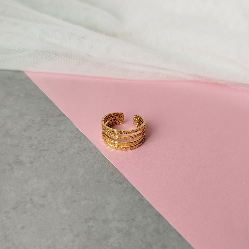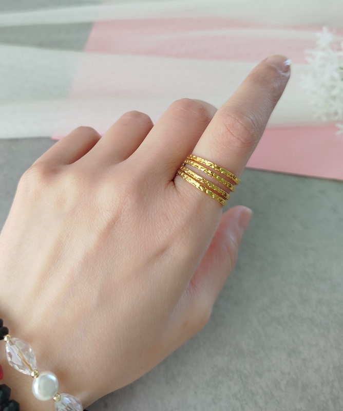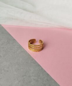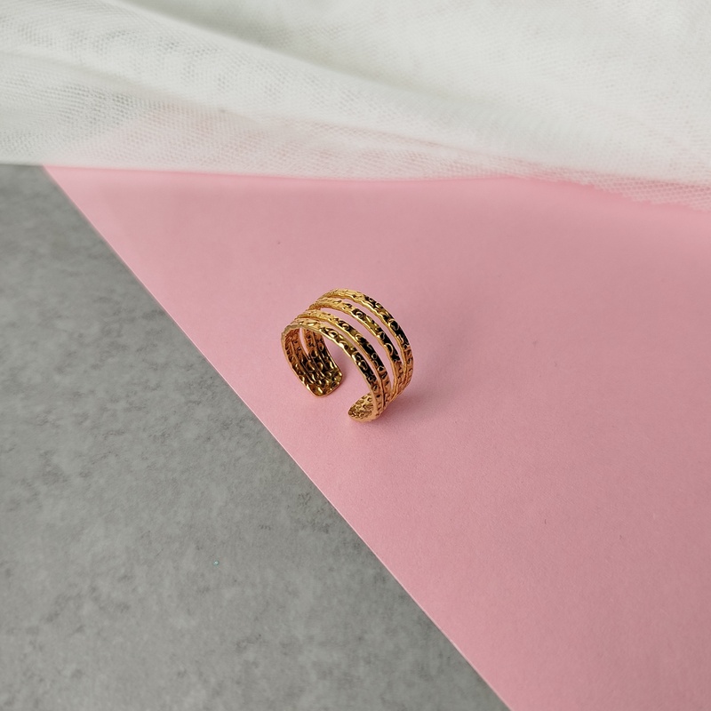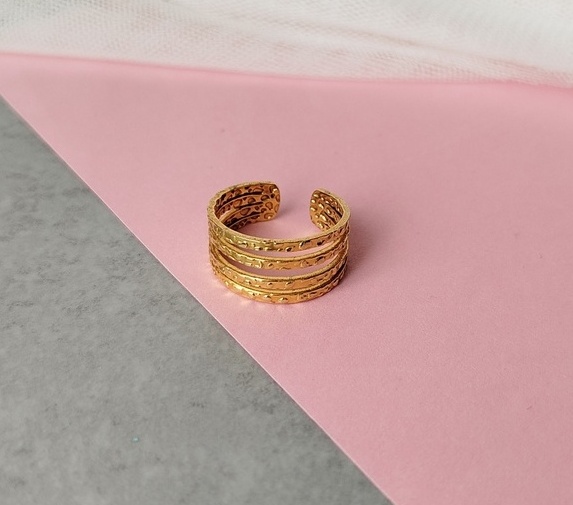 Δαχτυλίδι ατσάλινο επίχρυσο με λεπτές μπάρες. Θα στολίσει το χέρι σου με διακριτικό τρόπο. Το δαχτυλίδι από ανοξείδωτο ατσάλι είναι ένα κόσμημα που με κομψότητα, λάμψη, αισθητική, με ένα αποτέλεσμα που θα ξεχωρίσει.
