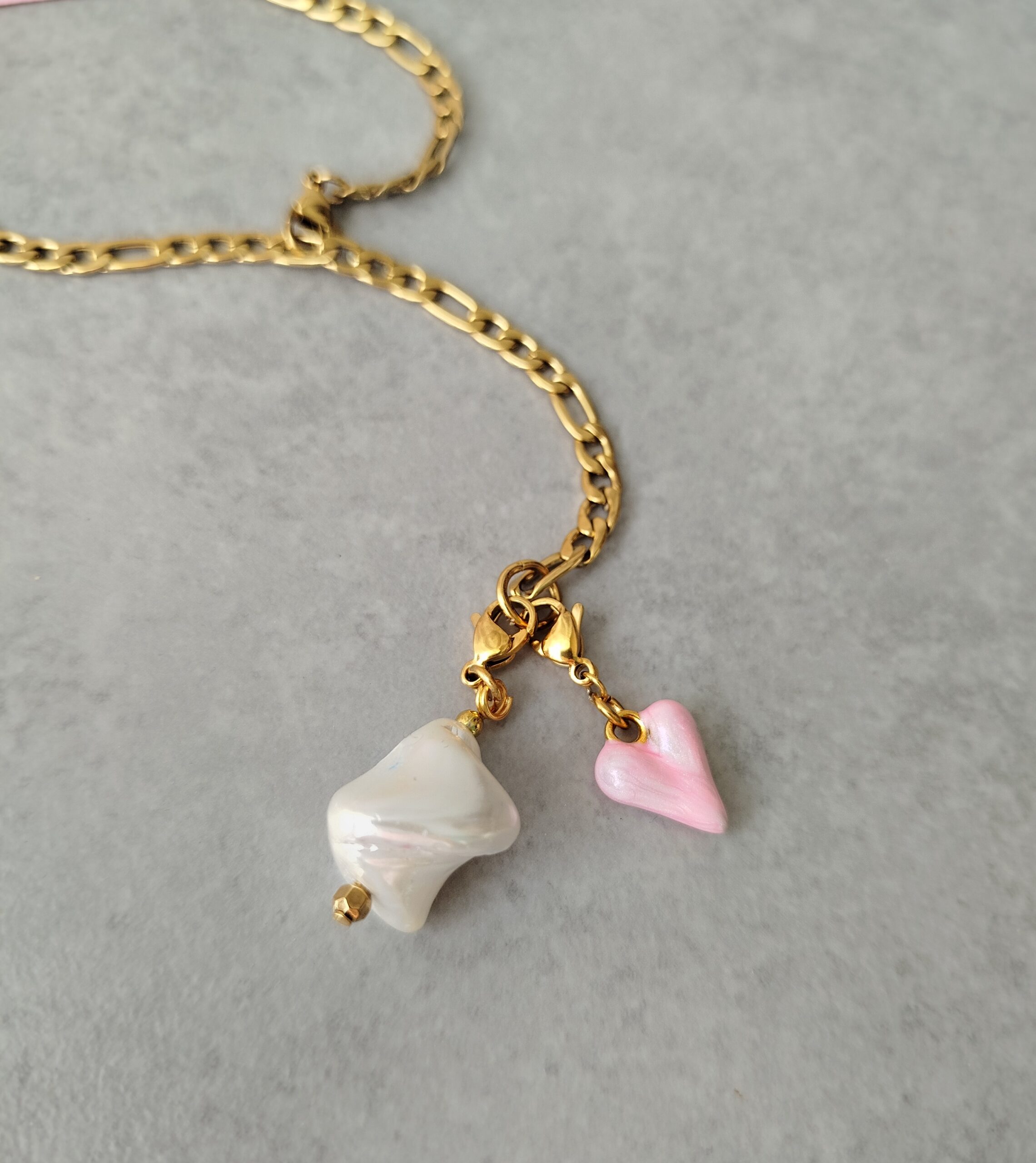 Μακριά Ατσάλινη Αλυσίδα Pink Heart με Αποσπώμενα Charms