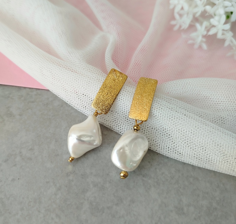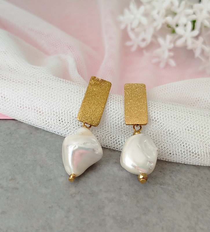 Επιχρυσωμένα σκουλαρίκια Pearl Drop με μεγάλη πέρλα. Ένα εντυπωσιακό ζευγάρι σκουλαρίκια που θα αναβαθμίσει κάθε σου σύνολο οποιαδήποτε στιγμή της ημέρας. Θα τα φορέσεις όλες τις εποχές. Και θα τραβήξουν την προσοχή σε κάθε περίσταση. Είναι μια πολύ κομψή και πάντα στην μόδα, επιλογή.