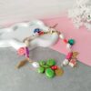 - Υλικά: Πέρλα από φίλντισι με επιμαργαριτάρωση, κρύσταλλα, στοιχείο από ημιπολύτιμη πέτρα χαολίτη, ακρυλικό στοιχείο, στοιχεία και αλυσίδα από ανοξείδωτο ατσάλι.