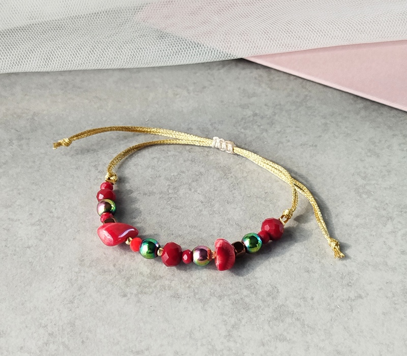 Αυτό το βραχιόλι είναι ιδανικό για layering, αλλά και εξίσου όμορφο όταν φοριέται μόνο του. Μπορεί να ταιριάξει εύκολα με χρυσά κοσμήματα, κοραλλί αποχρώσεις, γήινους τόνους ή ακόμα και με πιο ουδέτερα ρούχα για μια έντονη πινελιά χρώματος. Αποτελεί επίσης μια εξαιρετική επιλογή δώρου, καθώς το κόκκινο χρώμα συμβολίζει την αγάπη, τη ζωτικότητα και την καλή ενέργεια. Ένα κόσμημα που αναδεικνύει τον καρπό, τη διάθεση και το προσωπικό στιλ — ένας μικρός θησαυρός για την καθημερινότητά σου.