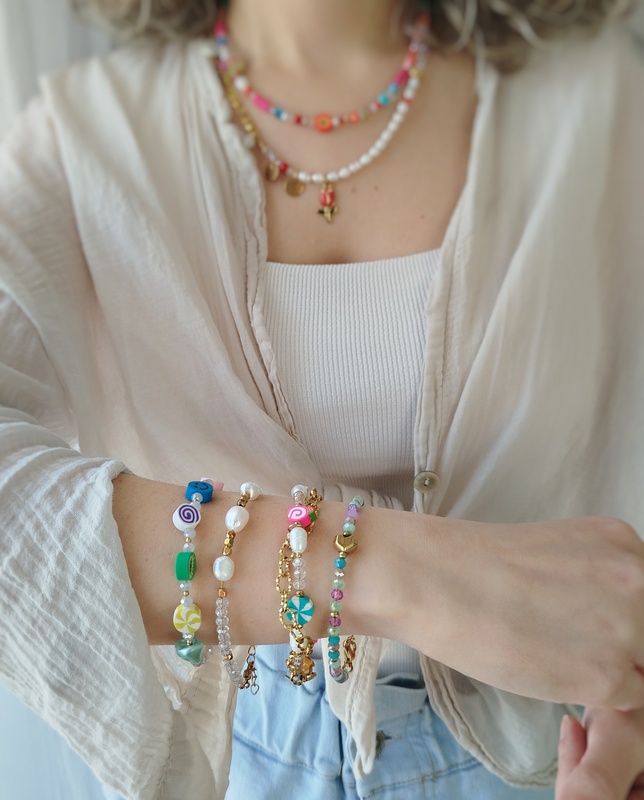 Βραχιόλι Multicolor με κρύσταλλα και μαργαριτάρια. Ένα πολύ κομψό, ευκολοφόρετο, πολύχρωμο βραχιόλι, που θα συνδυάσεις με πολλά και διαφορετικά outfits.