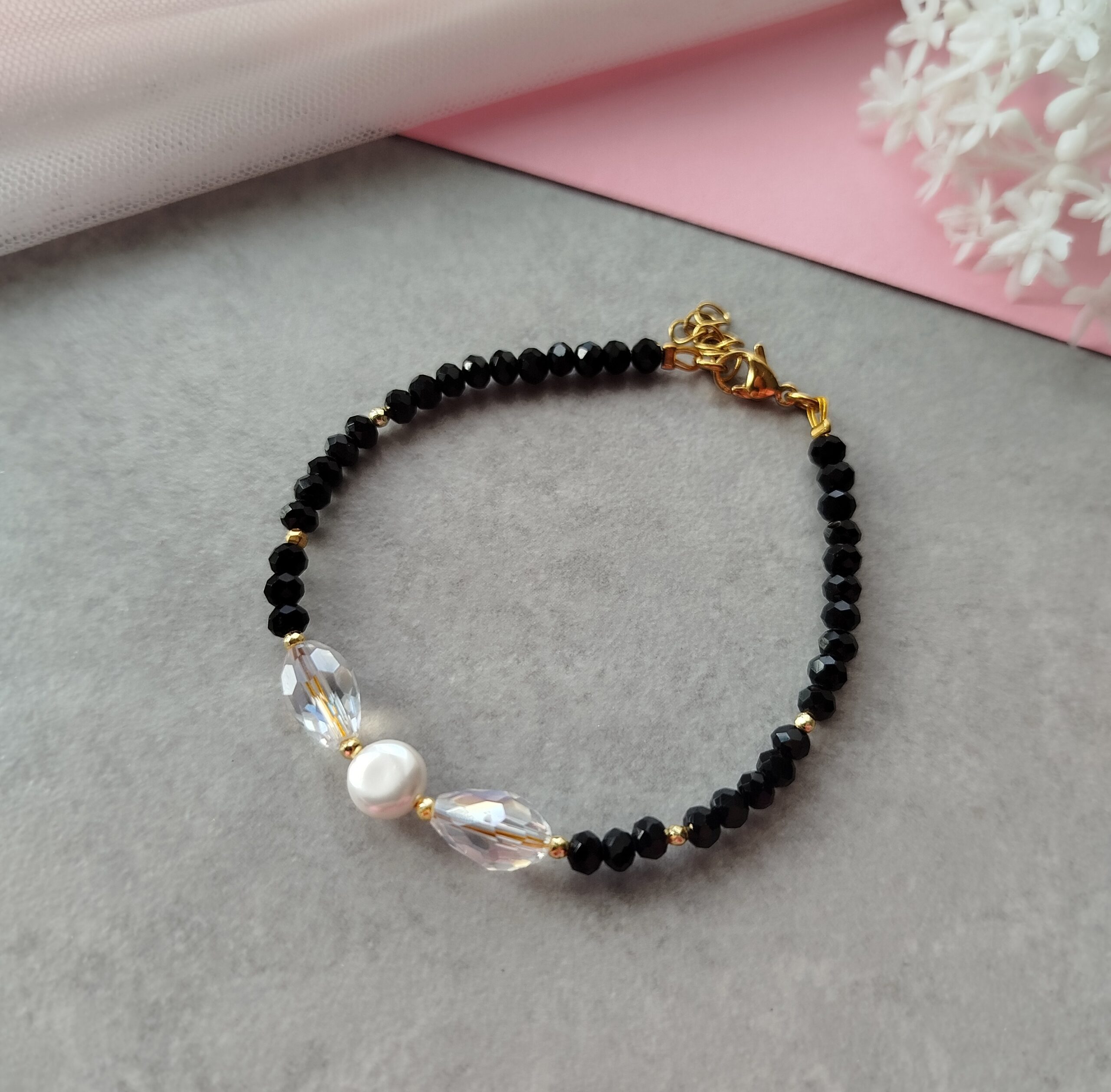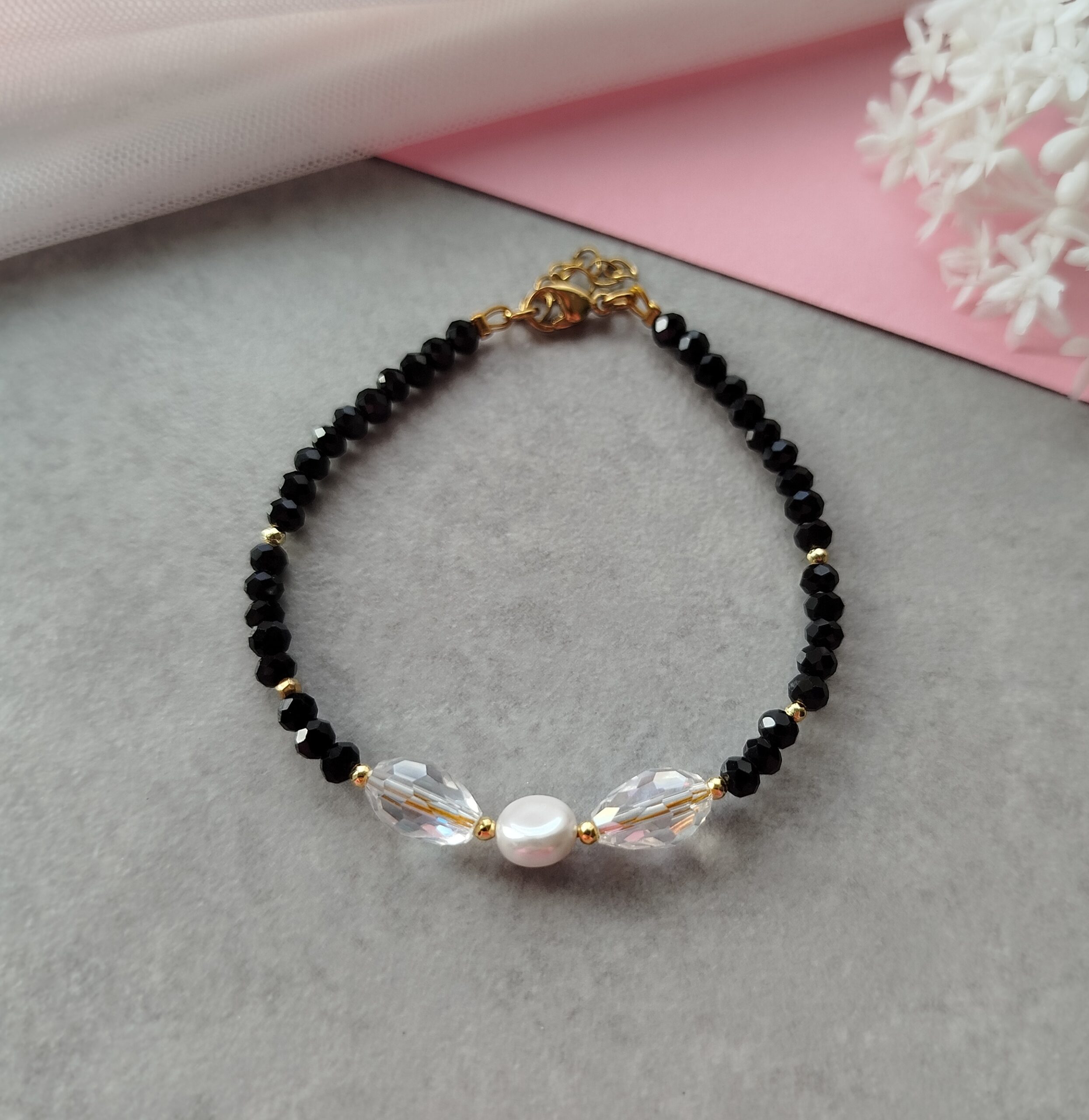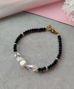 Βραχιόλι Μαύρα και Διάφανα Κρύσταλλα και Πέρλα