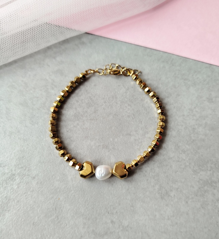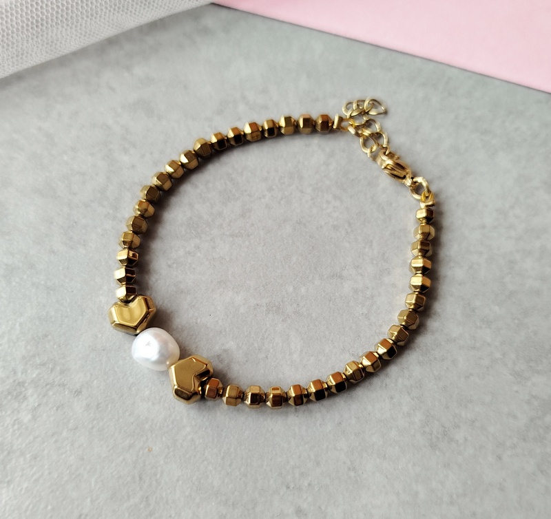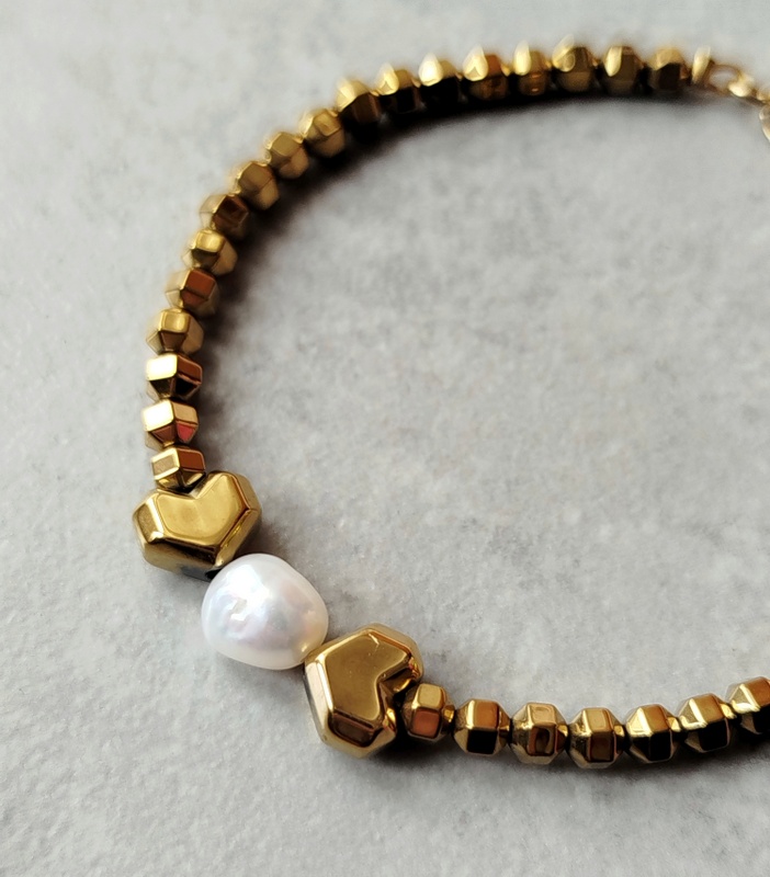 Βραχιόλι golden grace με πέτρες αιματίτη και μαργαριτάρι. Ένα κόσμημα πολύ κομψό και θηλυκό. Με διακριτική πολυτέλεια το βραχιόλι golden grace, είναι η επιλογή που θα ολοκληρώσει ιδανικά το στυλ σου. Ένα κόσμημα που θα φορέσεις εύκολα καθημερινά.